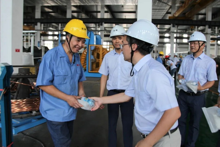 7月25日,,,, ,,好博(中国)体育股份公司向导带队深入车间一线,,,, ,,为工人们送上清凉物资。 。。。。。。每一份物资,,,, ,,不但转达着公司对一线工人的眷注,,,, ,,还满载着向导们深切的关爱。 。。。。。。公司向导关注一线工人的事情情形和身体情形,,,, ,,嘱咐各人一定要注重防暑降温。 。。。。。。