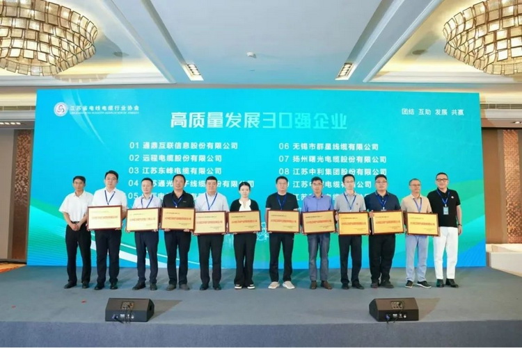 On August 24, the Jiangsu cable industry high quality development summit and the Jiangsu wire and cable industry association member congress were grandly held in Suzhou, with nearly 300 representatives from member enterprises across the province participating in the event. Sunzhenhua, vice chairman of remote shares, attended the event and presided over the round table dialogue on "smart to digital to Internet". Yuancheng shares was selected into the list of "top 30 high-quality innovative development enterprises in Jiangsu cable industry in 2023".