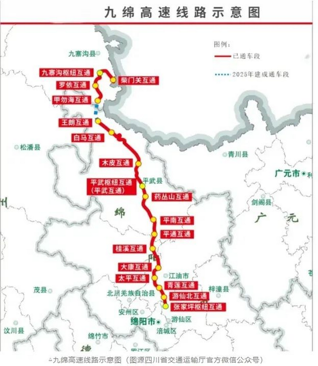 Jiulong Mianyang expressway is 244 kilometers long and is an important part of g8513 Pingyang Mianyang expressway. It connects Gansu, Qinghai and Xinjiang to the West and becomes a new channel from Sichuan to the northwest. After its opening to traffic, the driving distance from Chengdu to Jiuzhaigou will be shortened from 8 hours to 4 hours, which greatly improves the interconnection between Northwest Sichuan and Chengdu Chongqing economic circle, and helps Sichuan to deeply integrate into the "belt and road" construction.