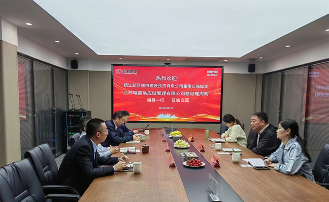 4月2日,,,,,镇江新区都会建设投资有限公司(简称镇江新区城投)董事长陈振宽、江苏瑞盛供应链管理有限公司(简称江苏瑞盛)总司理周菊一行到访好博(中国)体育股份,,,,,公司总司理马琪、副总司理沈建朋热情接待,,,,,双方举行深入的交流洽谈。。。。。。